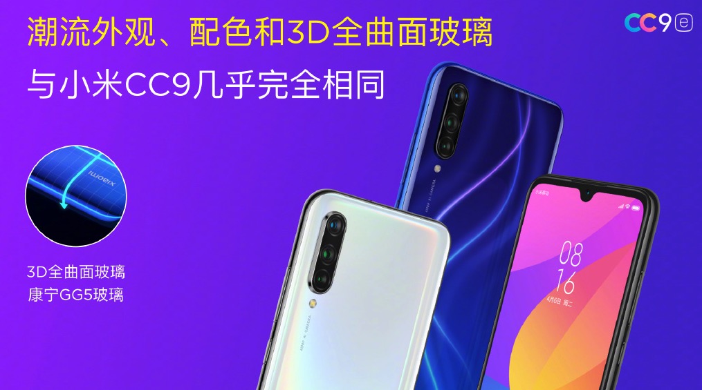 除了小米 CC9,小米今日还推出了该系列装备相对较低的版别,小米 CC9e。