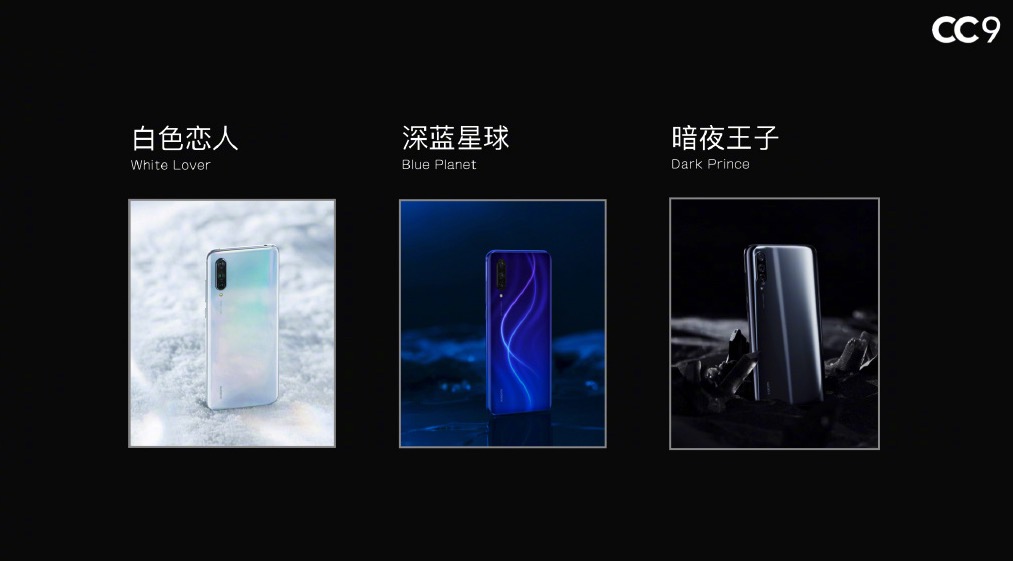 小米 CC9 供给“白色恋人”、“深蓝星球”、“暗夜王子”三种配色,全体选用 3D 全曲面玻璃和全金属中框,整机分量 179g,此外还有炫彩呼吸灯,来电时能宣布多彩灯火提示。这款手机还保留了 3.5mm 耳机孔。