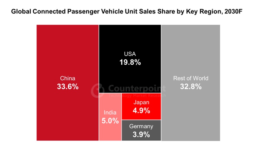 现在,德国在联网轿车浸透率方面处于领先地位,但估计我国将在2028年完成100%的联网轿车浸透率。这一开展使我国有望在2030年引领全球联网轿车出售商场,紧随其后的是美国、印度、日本和德国。估计到2030年,这五大国家将算计占全球联网轿车出售总量的三分之二以上。